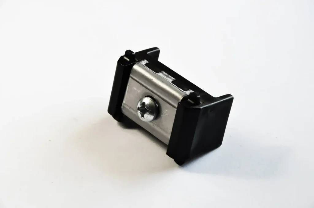 Polyethylene bracket, rivet nut – electrogalvanized steel, pressure plate*, M8 × 40 bolt – stainless steel.